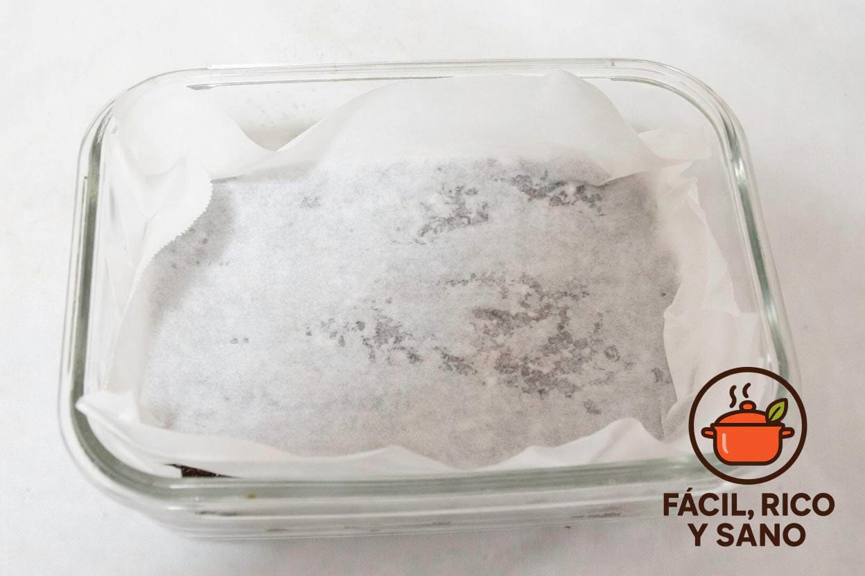 - Ponemos la masa en papel vegetal, y la cubrimos con otro papel vegetal presionando para que quede compacto.