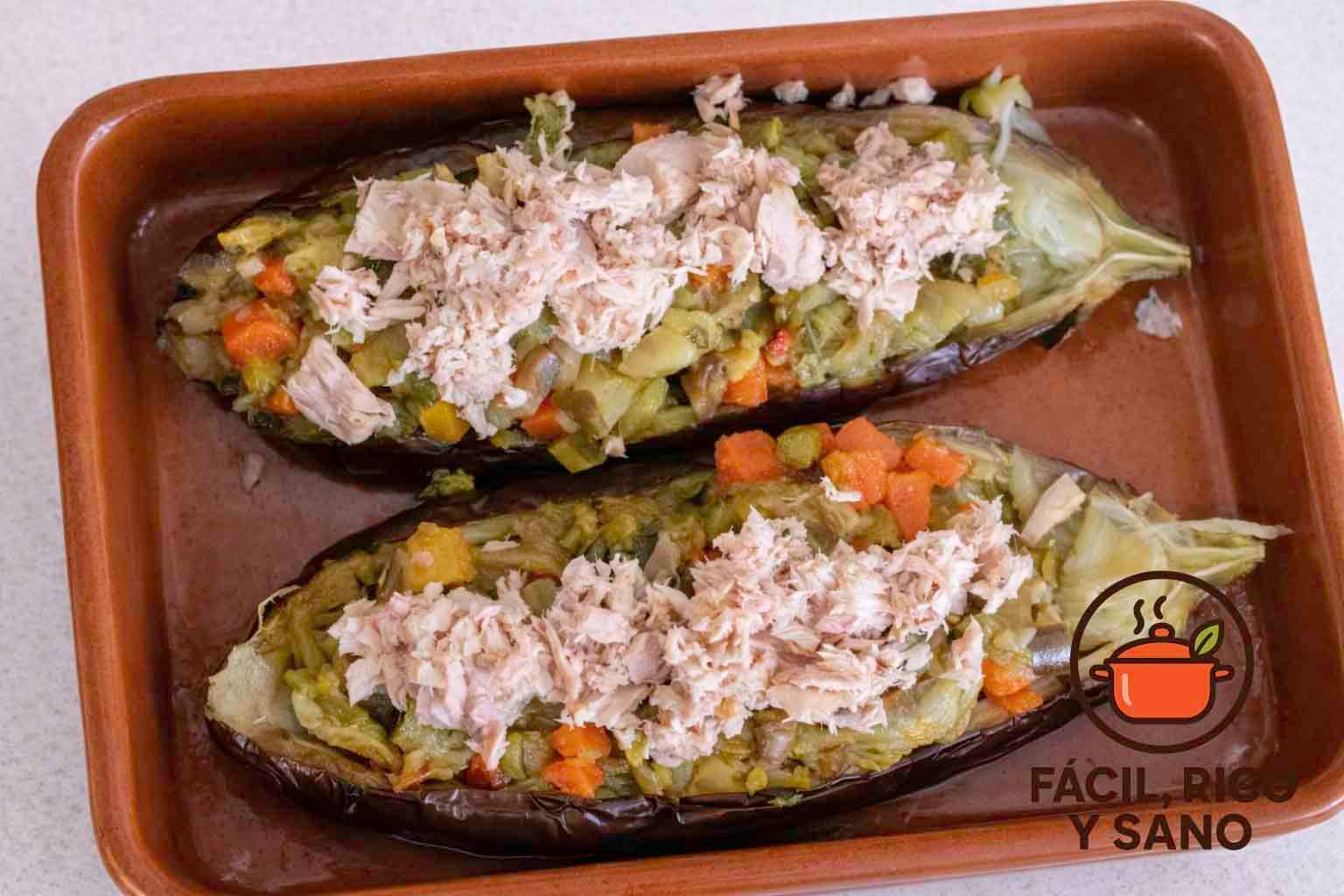 Cómo hacer berenjena rellena de verduras y atún paso a paso