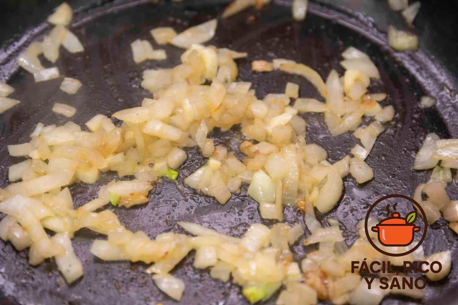 - Haz el sofrito:En la misma olla (con el aceite que quedó) sofríe la cebolla picada y los ajos laminados con una pizca de sal a fuego medio 5–7 minutos hasta que estén tiernos y ligeramente dorados. Opcional: añade el vino blanco y deja evaporar 1 minuto.