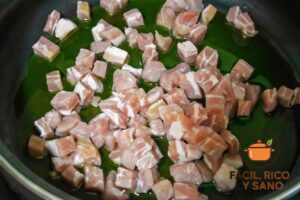 - Sella la carne: El secreto de cerdo mantiene mejor su jugosidad si lo cortas en dados medianos y los doras a fuego fuerte antes de integrar el sofrito.