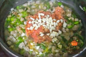 Incorpora la cebolla y el pimiento verde picados. Cocina a fuego medio 8–10 minutos, hasta que estén tiernos y ligeramente dorados.Incorpora el tomate y el ajo